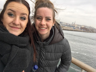 After we explored Hamlet's Castle, we took a ferry over to Sweden! Wahooo!! It was neat! We stopped first in Helsingborg in Sweden and explored around the city. As we crossed the waters from Helsingør to Helsingborg, the sun came out...well...kinda!